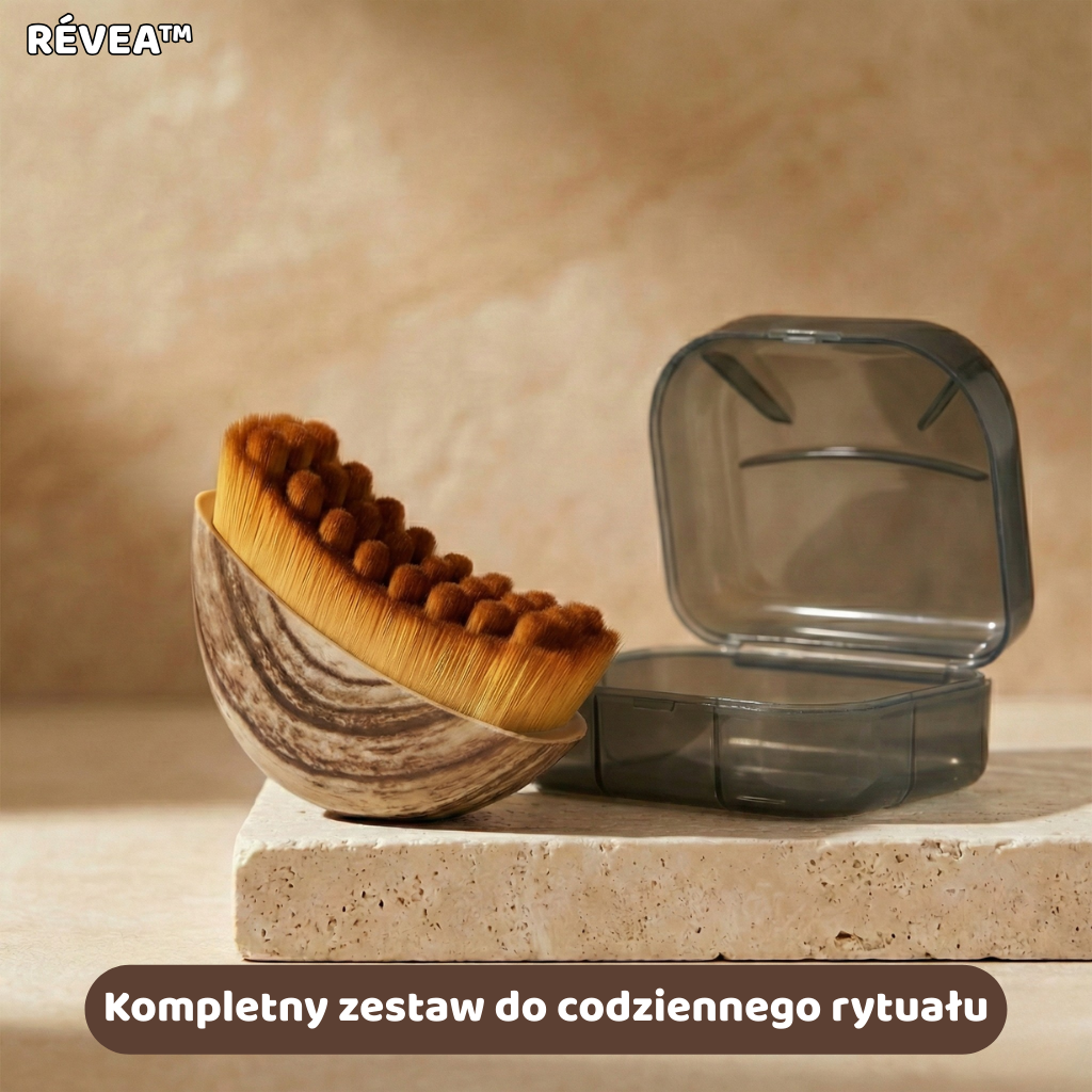 RÉVEA sprawia, że wykonujesz te ruchy intuicyjnie i bez wysiłku szczotka prowadzi po skórze w sposób płynny, delikatny i naturalny